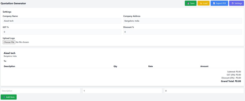 Easily create, edit, save, and export customer quotations with GST and discount calculation. Built for small businesses and freelancers needing quick quotes.